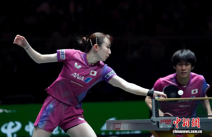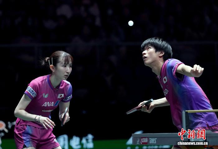 11月2日,4川成皆,日原队队员早田希娜(左)取户上隼辅正在混杂单挨角逐中。当日,2025年景皆邦际乒联混杂集团寰宇杯第1阶段角逐中,日原队以8:2胜克罗天亚队。中新社记者 安源 摄